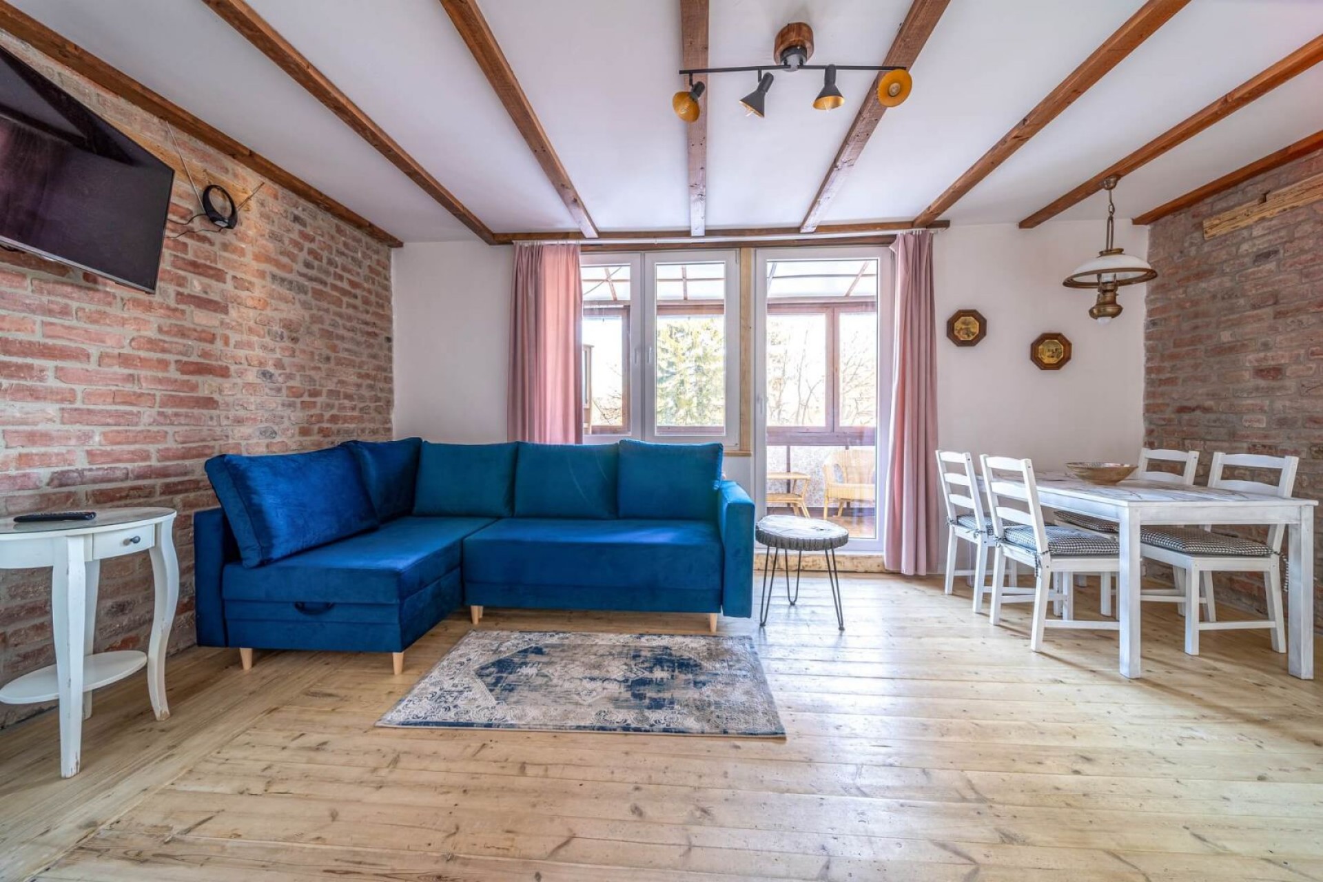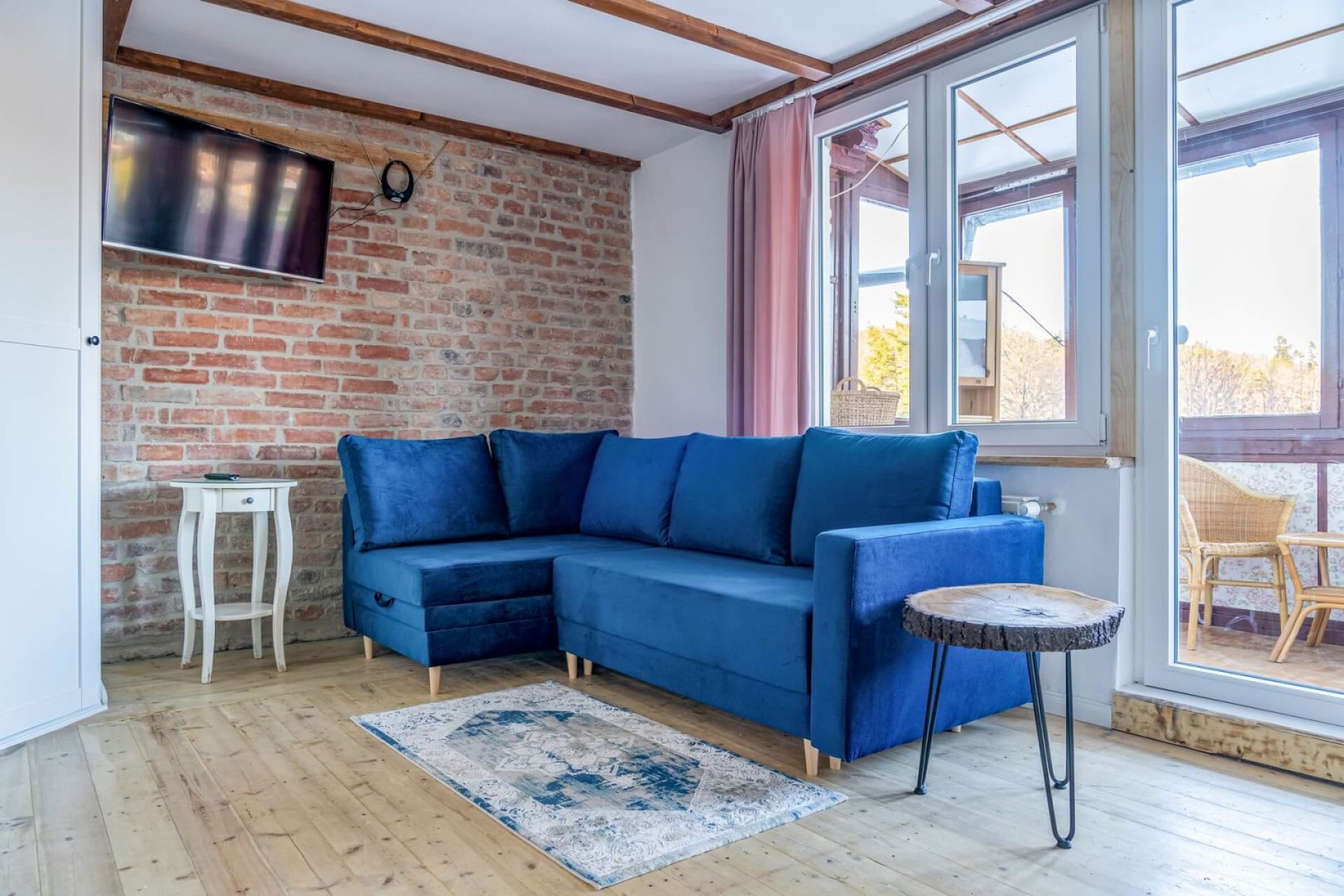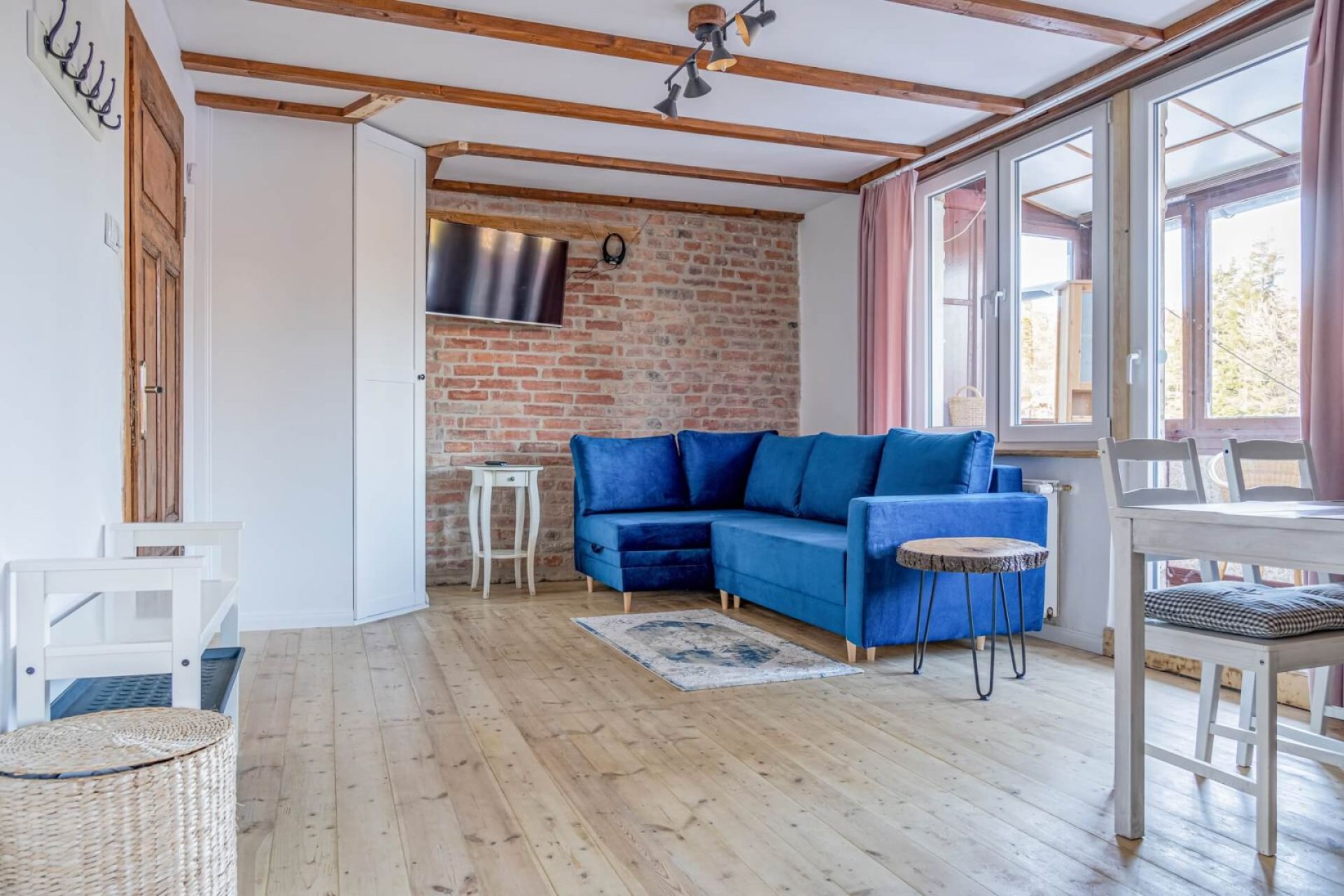 Dodatkowym atutem apartamentu jest oszklona weranda, z której mamy widok na urokliwą okolicę.