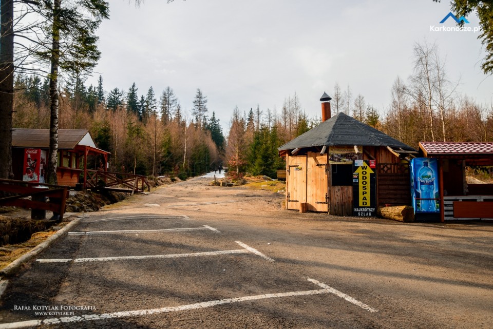 Do parkingów zlokalizowanych przy osiedlu Huty w Szklarskiej Porębie możemy się dostać na kilka sposobów: pieszo z centrum miasta, autobusem PKS lub własnym środkiem transportu. Parkingi i początek szlaku leżą tuż przy drodze krajowej nr 3 (Czeska Szosa) prowadzącej do Jakuszyc, a następnie do Republiki Czeskiej. Opłaty za parking zaczynają się od 5 złotych do 20 złotych za całą dobę, poza sezonem część parkingów jest bezpłatna.