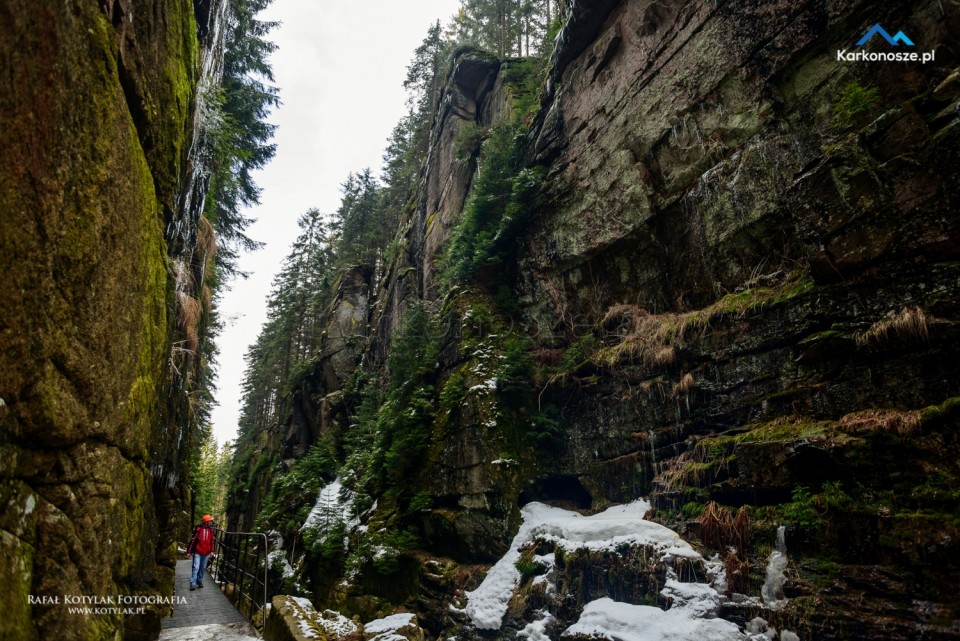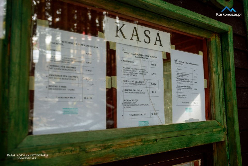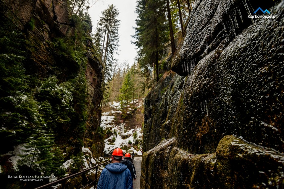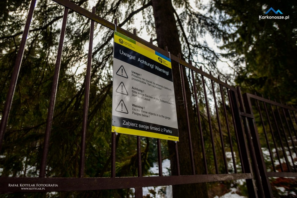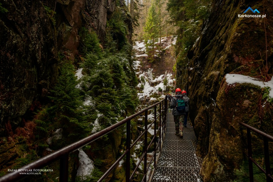 Gdy docieramy do szczytu wzniesienia, po lewej stronie znajduje się wejście do kanionu Kamieńczyka. Odwiedzenie punktu widokowego u podnóża wodospadu możliwe jest tylko w kasku, który otrzymujemy po zakupie biletów wstępu (cena biletu normalnego to 6 zł, ulgowego - 3 zł).
