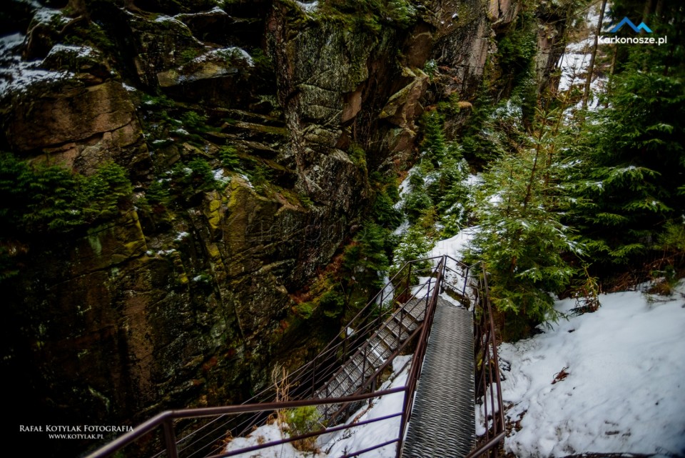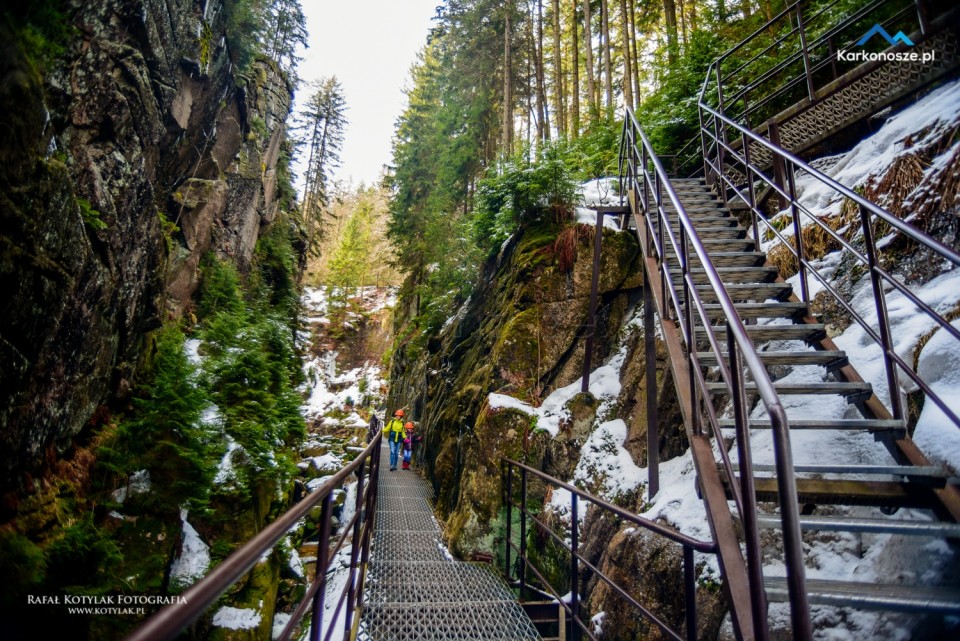 Obowiązkowym punktem na mapie każdego, kto odwiedza Karkonosze, a w szczególności Szklarską Porębę, jest najwyższy wodospad polskich Sudetów - Wodospad Kamieńczyka. Prowadzi do niego wiele szlaków ze Szklarskiej Poręby, my jednak wybraliśmy najkrótszy odcinek, który prowadzi z parkingu przy Osiedlu Huty. Nasza trasa ma długość 4 kilometrów, przebiega odcinkiem Głównego Szlaku Sudeckiego (czerwony szlak) i zajmie nie więcej jak 1,5 godziny.