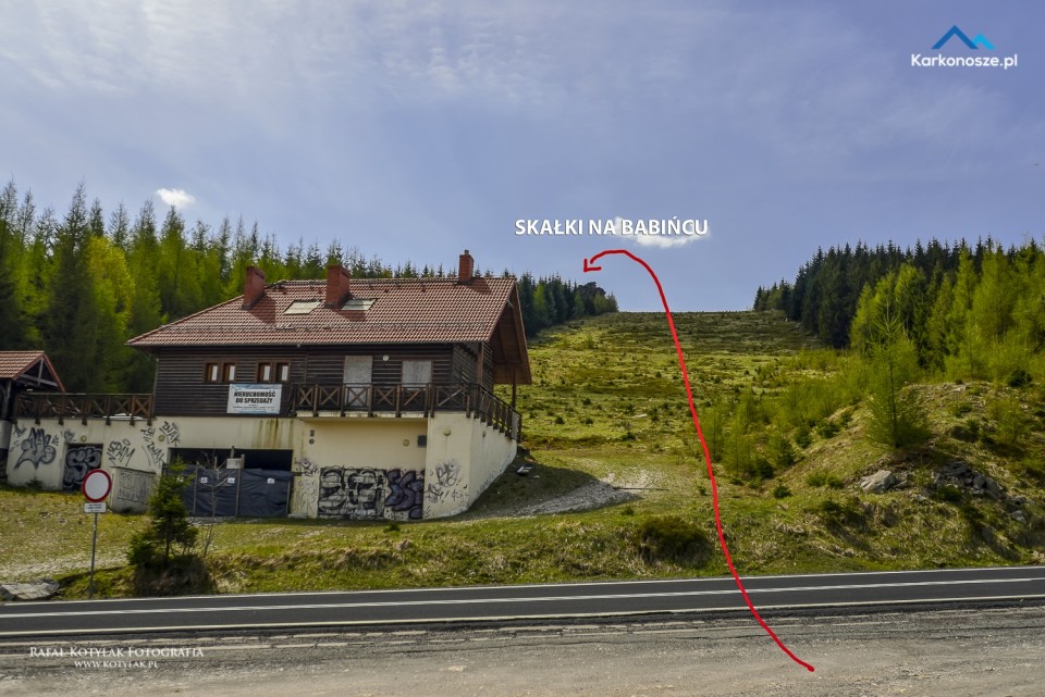 Aktualnie na szczyt Babińca nie prowadzi żaden oficjalny szlak, co nie znaczy że nie można tam dotrzeć. Najprostszą drogą dotarcia na skałki jest pozostawienie auta na parkingu przy drodze krajowej nr 3 pomiędzy Szklarską Porębą a Jakuszycami (bliżej Jakuszyc). Parking leży tuż przy byłej nartostradzie na Babiniec, nie sposób ominąć tego miejsca jadąc autem. Skałki zlokalizowane są u góry nartostrady z jej lewej strony i są widoczne z parkingu co dokładnie pokazane jest na poniższej fotografii. Podejście pod skałki nartostradą to około 500 m i zajmie 10 minut. 100 metrów za parkingiem w stronę Jakuszyc znajduje się leśna droga, którą możemy dotrzeć na szczyt Babińca od jego tylnej strony, tę trasę polecamy wybrać mniej doświadczonym turystom, ewentualnie dla osób, które chciały by sie wybrać tam z dziećmi. Kierujemy się drogą do pierwszego rozwidlenia na którym skręcamy w prawo pod górę, docieramy do drugiego rozwidlenia na którym skręcamy w prawo i po krótkim podejściu docieramy na szczyt Babińca, ten odcinek ma długość około 1 km czas potrzebny do jego przebycia to około 20 minut. Na Babiniec możemy dotrzeć także od strony Jakuszyc byłym zielonym szlakiem, lub z Owczych Skał jednak są to dłuższe wyprawy.