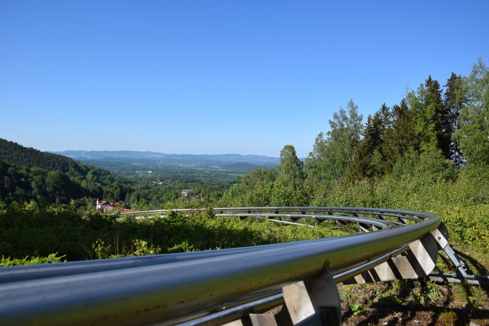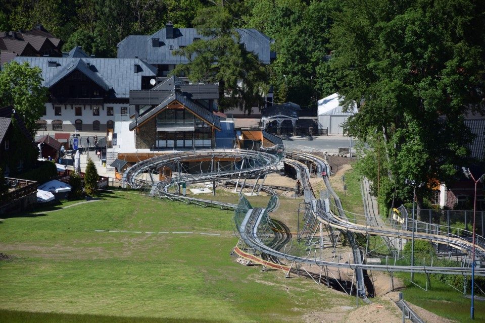 Jazda w letniej rynnie saneczkowej dostarczy niesamowitych wrażeń. Jest to jeden z najdłuższych torów saneczkowych w Polsce z wirażem ponad 360º. Tor jest oznakowany, w nocy oświetlony i spełnia wszelkie wymogi bezpieczeństwa. Cały tor ma długość 1430 m z czego ponad kilometr samego zjazdu. Trasa obejmuje 2 tunele o łącznej długości 24 m. Ze zjazdu skorzystać mogą dzieci pod opieką dorosłych. Maksymalna prędkość to aż 35 km/h