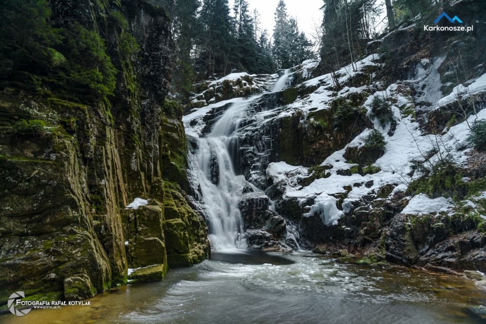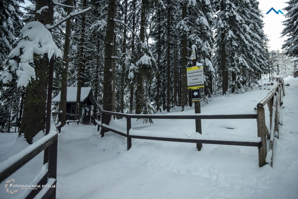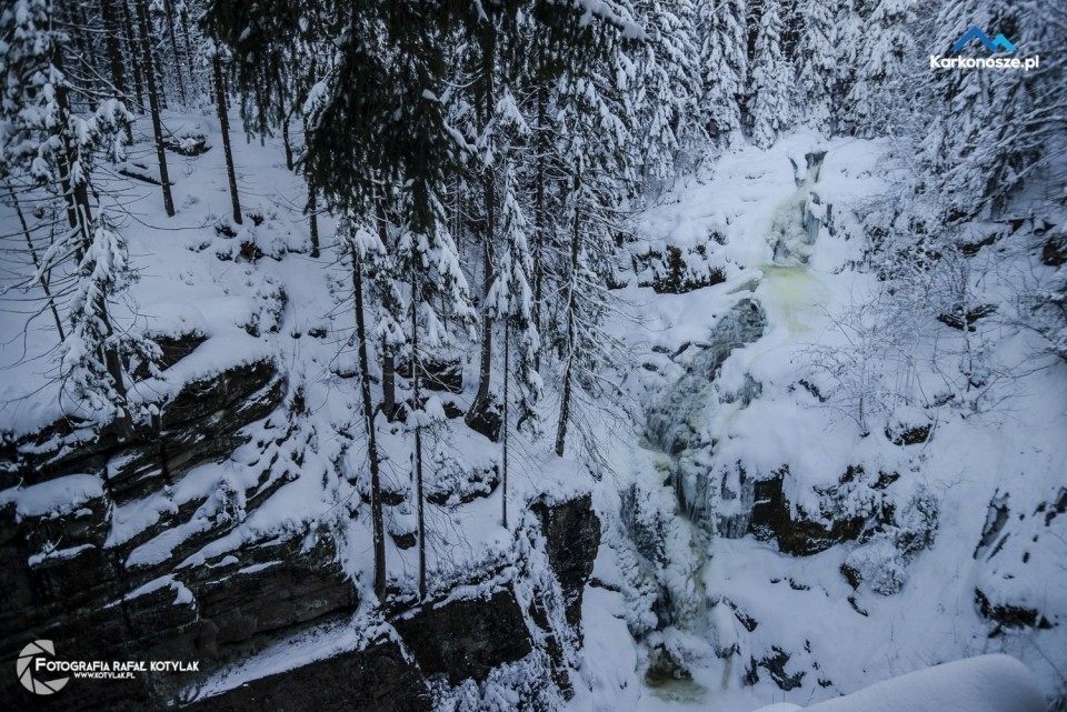 Wodospad Kamieńczyka jest najwyższym wodospadem polskiej części Karkonoszy - jego wysokość to 27 metrów, woda z potoku spada trzema kaskadami i wpada do wąwozu Kamieńczyka. Wstęp na dolny taras widokowy na dnie wodospadu jest płatny, a bilety można zakupić w kasie biletowej umieszczonej po lewej stronie szlaku. Gdybyście byli zainteresowani pełniejszym opisem wodospadu polecamy zapoznać się z opisem wycieczki, który jakiś czas temu przygotowaliśmy: Krucze Skały – Wodospad Kamieńczyka.