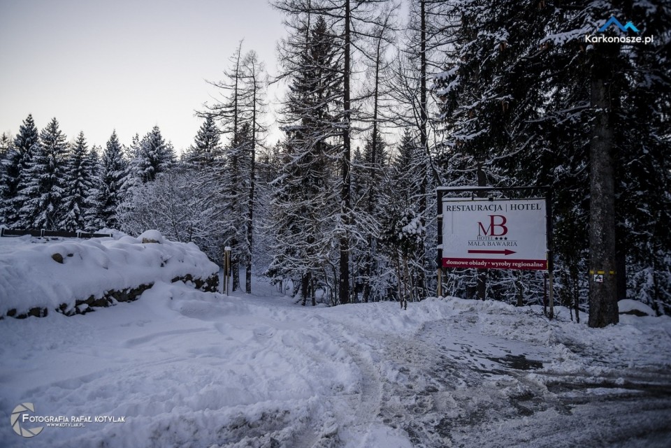 Po prawej stronie kas biletowych, tuż obok parkingu oraz pensjonatu Jural, odnajdujemy oznaczony czarny szlak, który poprowadzi nas w kierunku rozdroża pod Kamieńczykiem.