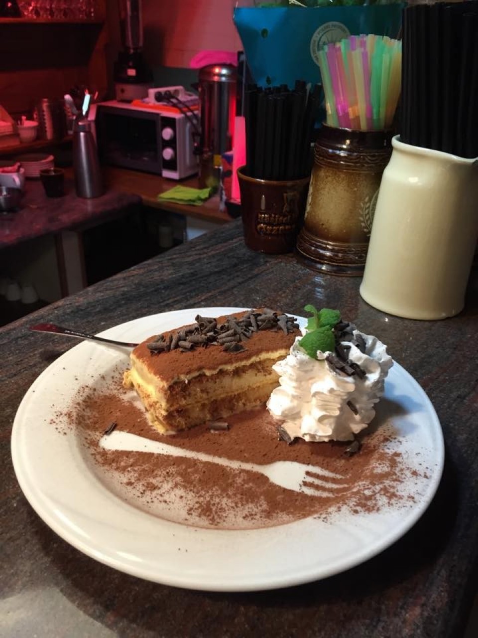 W polskiej części menu można znaleźć takie przysmaki jak schab po chłopsku, smażony pstrąg czy pierogi. Z włoskich przysmaków spróbować warto przede wszystkim pizzy, ale podawane są również carpaccio z polędwicy wołowej, spaghetti czy tagilatelle. Oprócz tego w menu jest duży wybór sałatek i potraw z grilla. A na deser najbardziej pożądane są lody waniliowe z bitą śmietaną i malinami na gorąco.