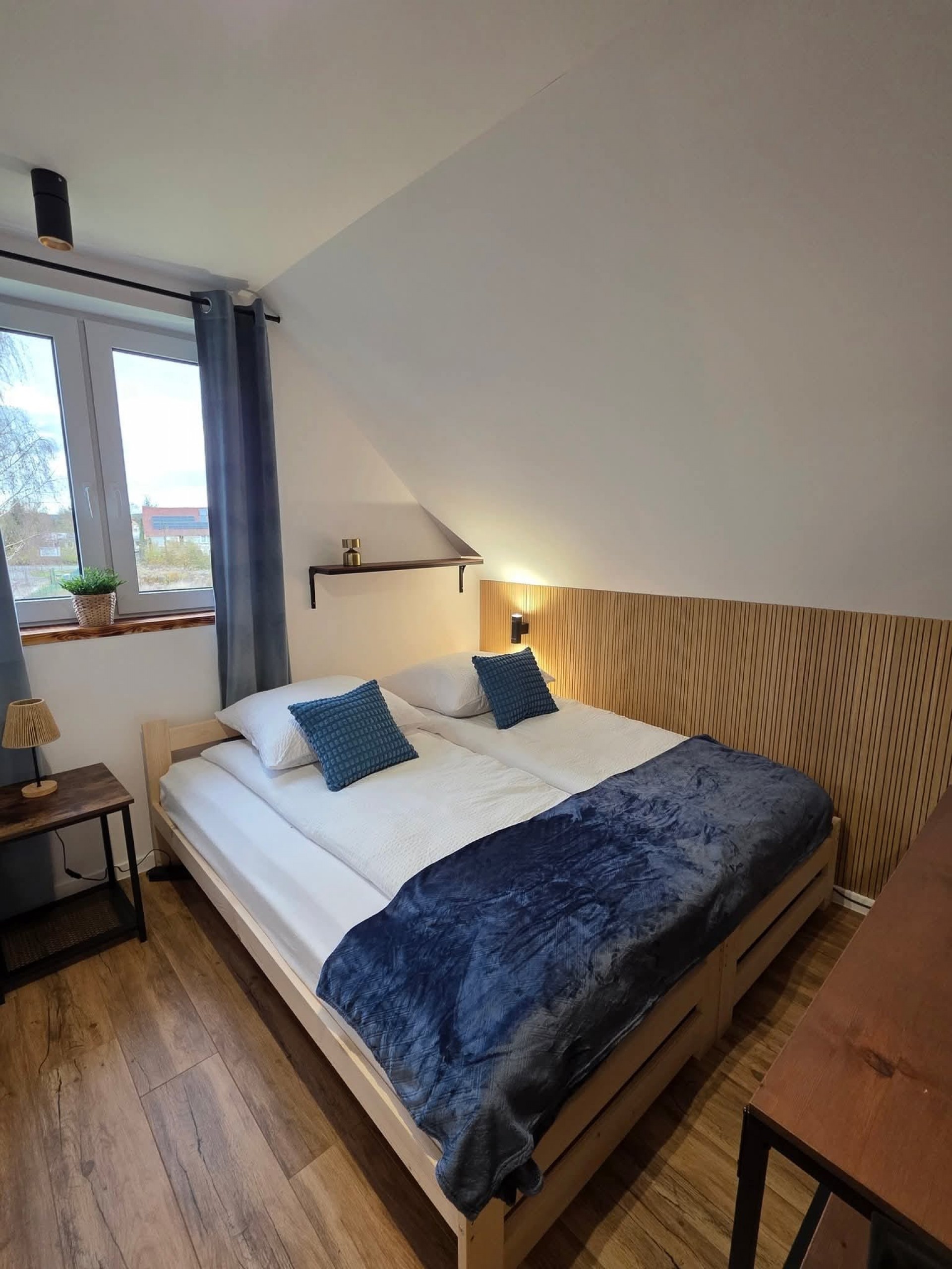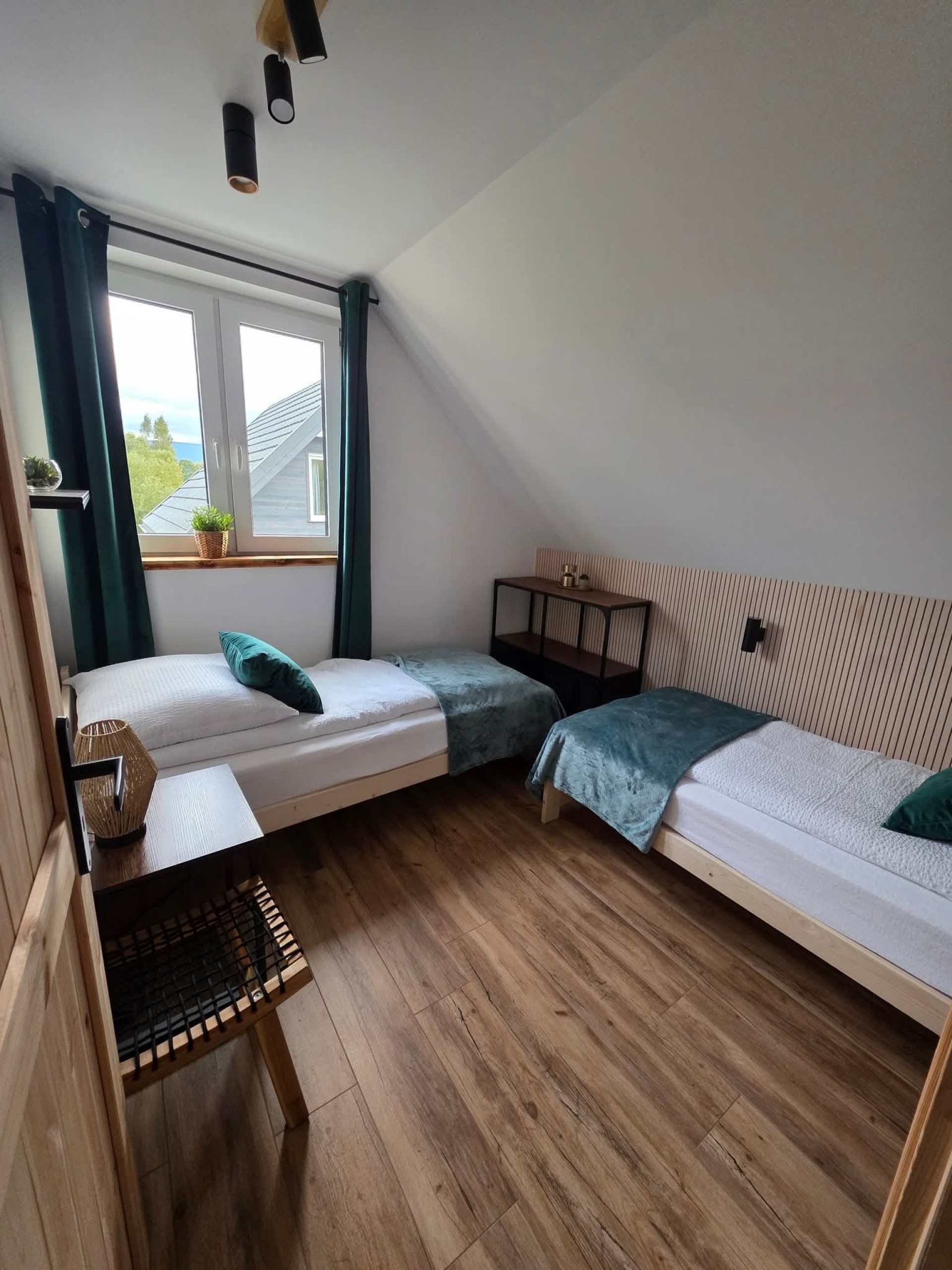 Domek ma około 75 m² i pomieści do sześciu osób. W środku jest salon z sofą , jadalnią i w pełni wyposażonym aneksem kuchennym z lodówką, zmywarką i ekspresem do kawy. Na parterze znajduję się łazienka z prysznicem. Na górze znajdują się trzy sypialnie 2-osobowe oraz druga łazienka z wanną. Na zewnątrz znajduje się taras z balią z funkcja jacuzzi oraz miejscem do grillowania i ogród, w którym można spokojnie posiedzieć. Goście mają też do dyspozycji darmowy parking i Wi-Fi.